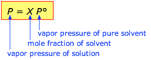 Pure solvent at the same temperature scaled by the mole fraction of the solvent present raoult. This law is applied for a solution of liquid in liquids and can be stated as follows.the partial vapour pressure of any component in the solution is directly proportional to its.